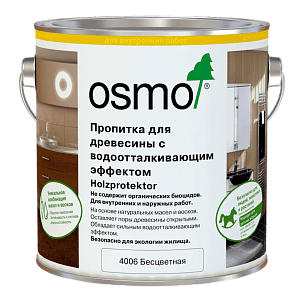 Osmo Holzprotektor 4006 — это экологичная пропитка на основе воска без биоцидов, предназначенная для глубокой защиты деревянных поверхностей от повышенной влажности. Подходит для внутренних и наружных работ: деревянных полов, оконных рам, поверхностей в ванных комнатах, а также детских игровых комплексов, песочниц и других элементов, где требуется безопасная и надёжная защита.